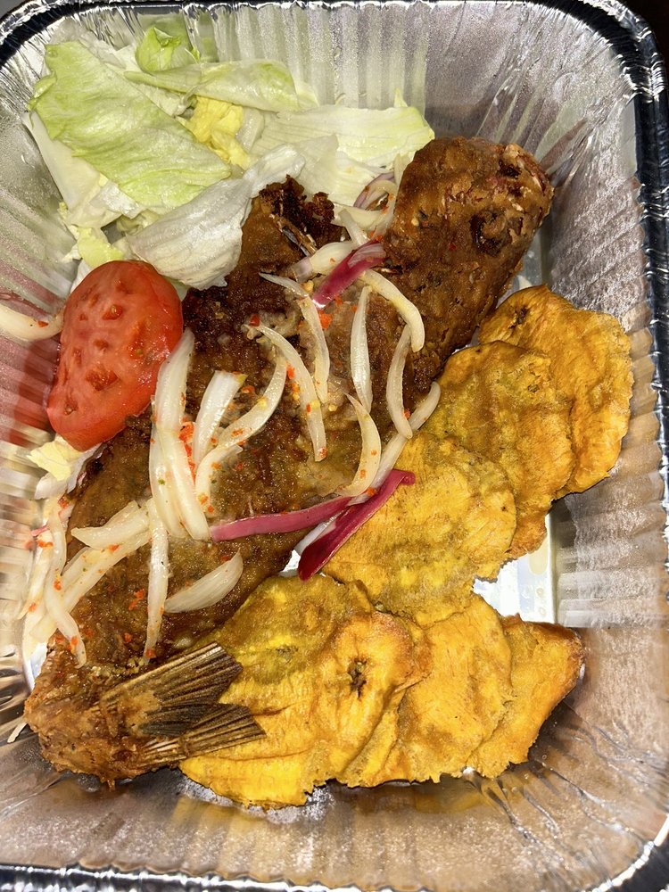 One of the highlights is their Fried Goat, which is boiled and fried for a savory experience that truly impresses. Equally tantalizing is the black rice, a must-try that perfectly accompanies many dishes. The menu also includes succulent Fried Fish Poisson and crispy Chicken Wings, served alongside vibrant sides like fried plantains and seasoned fries.